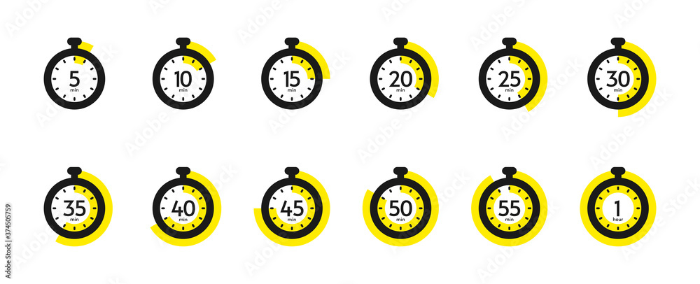 Timer And Stopwatch Icon Set Countdown Timer With Different Time Kitchen Stopwatch Symbol For Cooking Or Sports Clock With Minutes Vector Illustration Stock Vector Adobe Stock